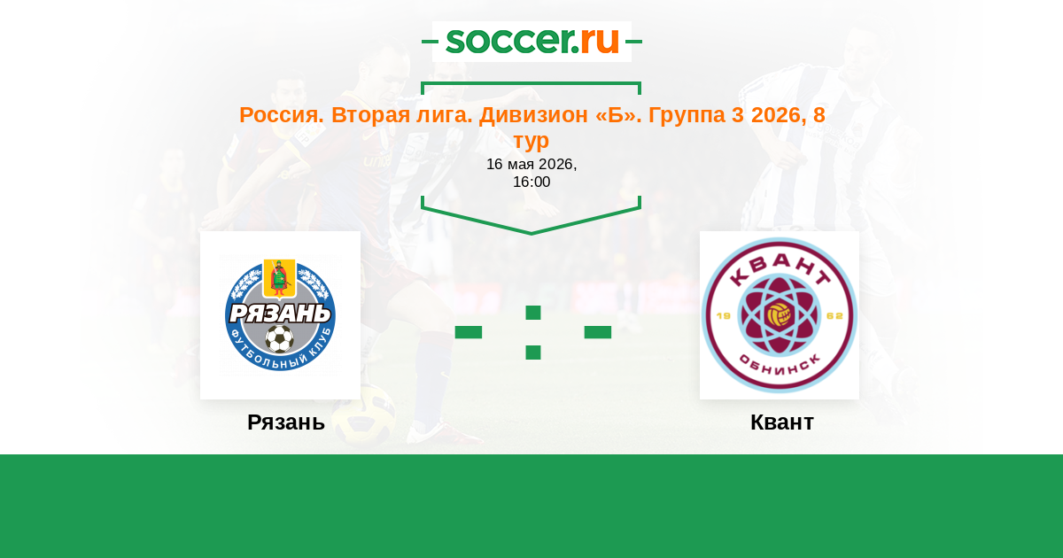 Россия. Вторая лига. Дивизион «Б». Группа 3 25.10.2025 Рязань Логотип футбольный клуб Рязань 2:1 Логотип футбольный клуб Квант (Обнинск) Квант