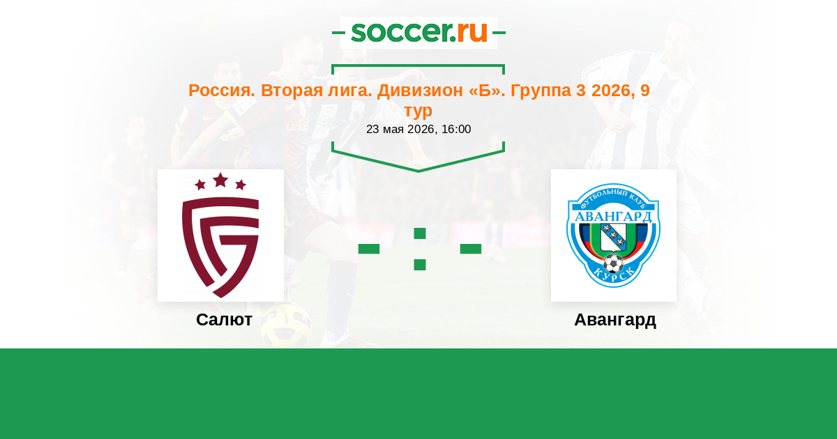 Россия. Вторая лига. Группа 3 05.05.2023 Салют Логотип футбольный клуб Салют (Белгород) 4:1 Логотип футбольный клуб Авангард (Курск) Авангард