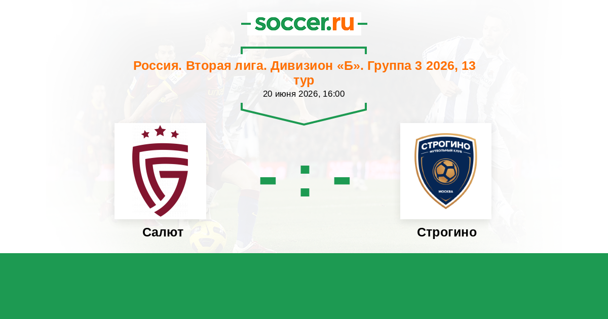 Россия. Вторая лига. Дивизион «Б». Группа 3 21.06.2025 Салют Логотип футбольный клуб Салют (Белгород) 3:1 Логотип футбольный клуб Строгино (Москва) Строгино