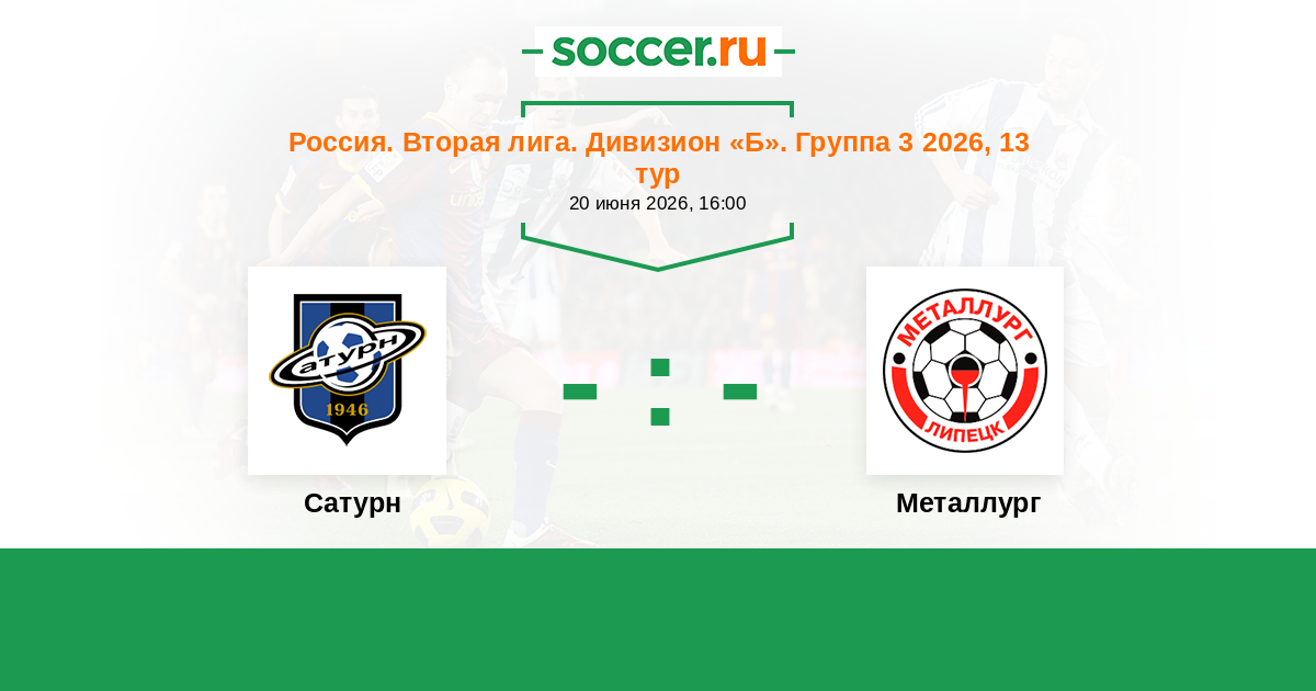 Россия. Вторая лига. Группа 3 20.07.2016 Сатурн Логотип футбольный клуб Сатурн (Раменское) 1:1 Логотип футбольный клуб Металлург (Липецк) Металлург