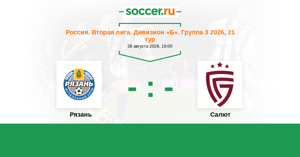 Россия. Вторая лига. Дивизион «Б». Группа 3 01.06.2024 Рязань Логотип футбольный клуб Рязань 0:2 Логотип футбольный клуб Салют (Белгород) Салют