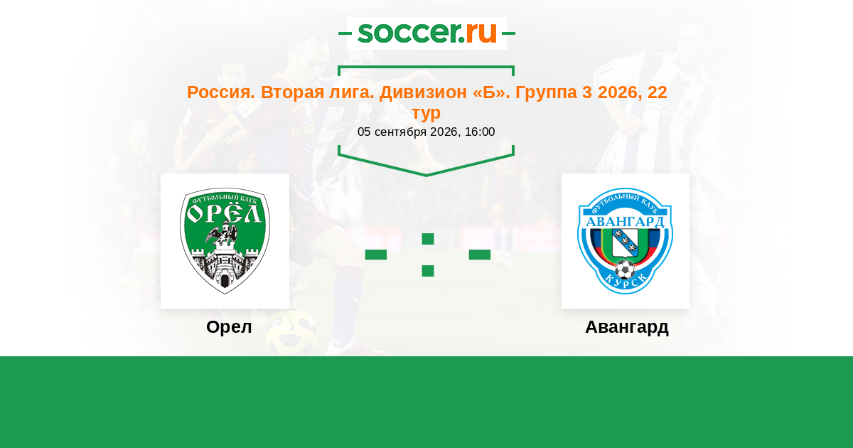 Россия. Вторая лига. Группа 3 25.08.2016 Авангард Логотип футбольный клуб Авангард (Курск) 0:0 Логотип футбольный клуб Орел Орел