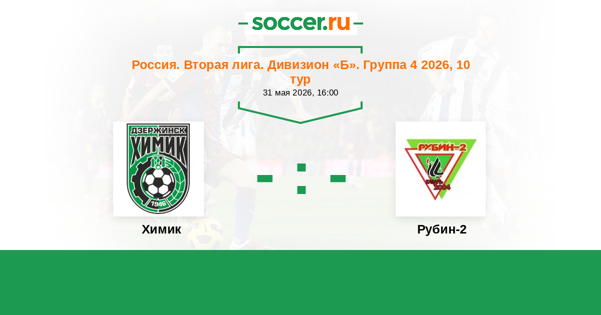 Россия. Вторая лига. Дивизион «Б». Группа 4 17.08.2025 Химик Логотип футбольный клуб Химик (Дзержинск) 3:1 Логотип футбольный клуб Рубин-2 (Казань) Рубин-2