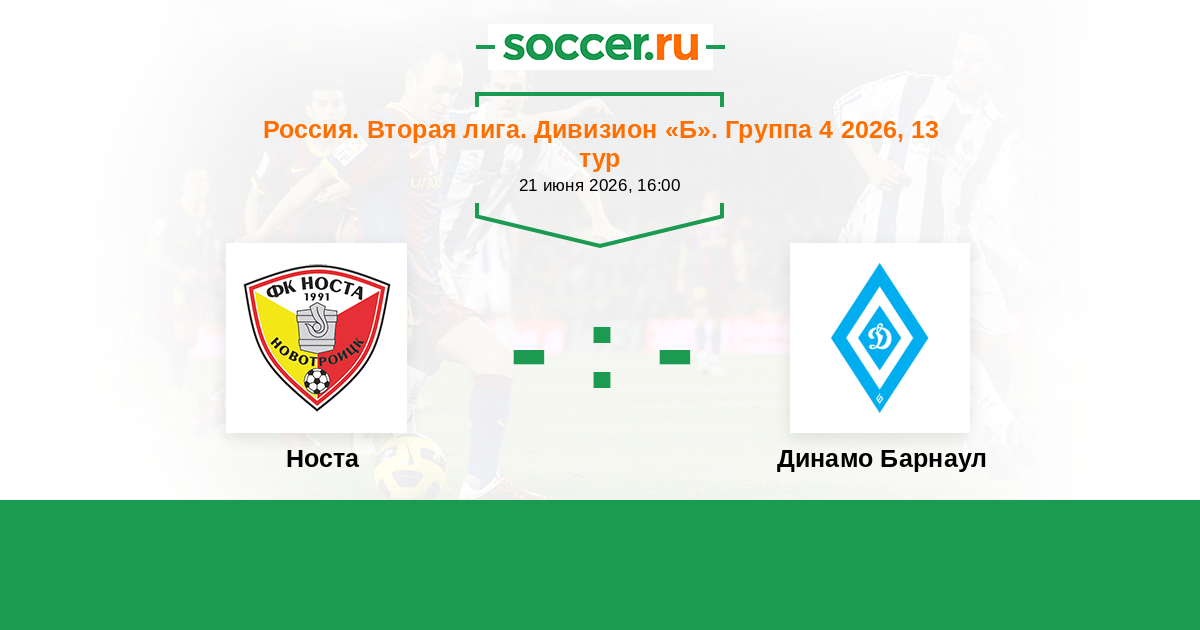 Россия. Вторая лига. Группа 4 07.08.2021 Носта Логотип футбольный клуб Носта (Новотроицк) 0:2 Логотип футбольный клуб Динамо Барнаул Динамо Барнаул