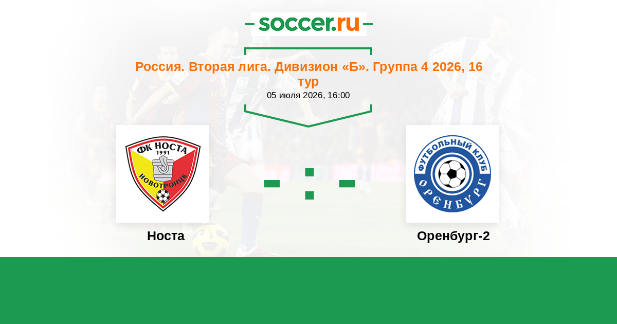 Россия. Вторая лига. Дивизион «Б». Группа 4 29.06.2025 Носта Логотип футбольный клуб Носта (Новотроицк) 3:2 Логотип футбольный клуб Оренбург-2 Оренбург-2