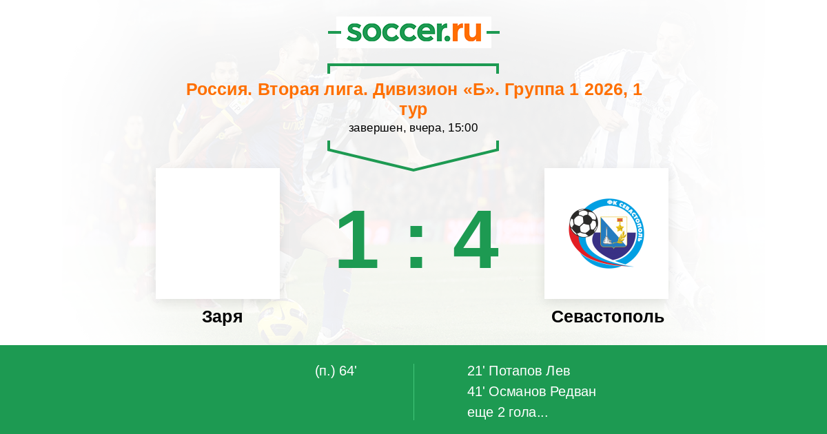 Протокол матча Заря против Севастополь