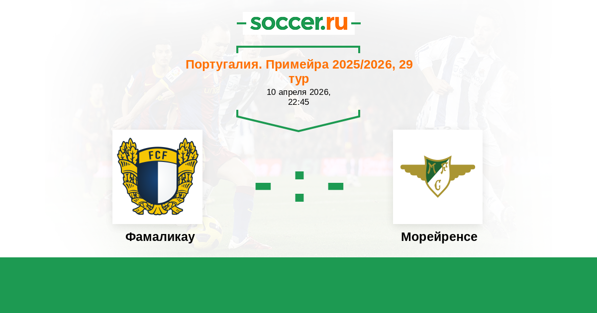 Португалия. Примейра 23.02.2025 Фамаликау Логотип футбольный клуб Фамаликау (Вила Нова де Фамаликау) 2:0 Логотип футбольный клуб Морейренcе (Морейра-де-Конегуш) Морейренcе