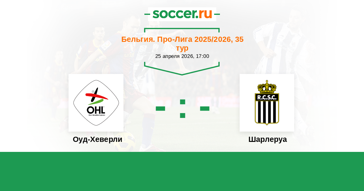 Бельгия. Про-Лига 14.03.2026 Шарлеруа Логотип футбольный клуб Шарлеруа 0:2 Логотип футбольный клуб Оуд-Хеверли (Левен) Оуд-Хеверли