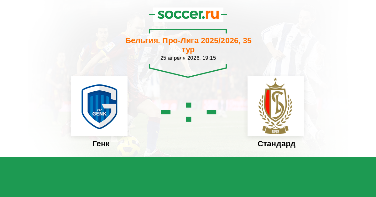 Бельгия. Про-Лига 13.04.2014 Генк Логотип футбольный клуб Генк 2:2 Логотип футбольный клуб Стандард (Льеж) Стандард