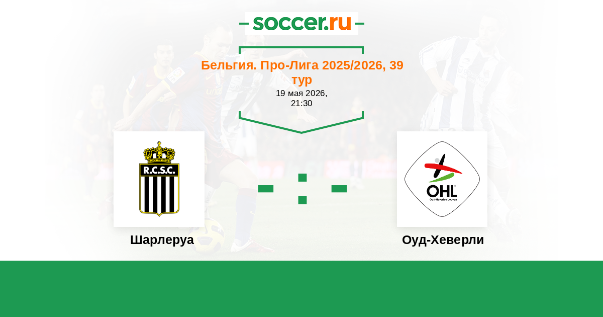 Бельгия. Про-Лига 14.03.2026 Шарлеруа Логотип футбольный клуб Шарлеруа 0:2 Логотип футбольный клуб Оуд-Хеверли (Левен) Оуд-Хеверли