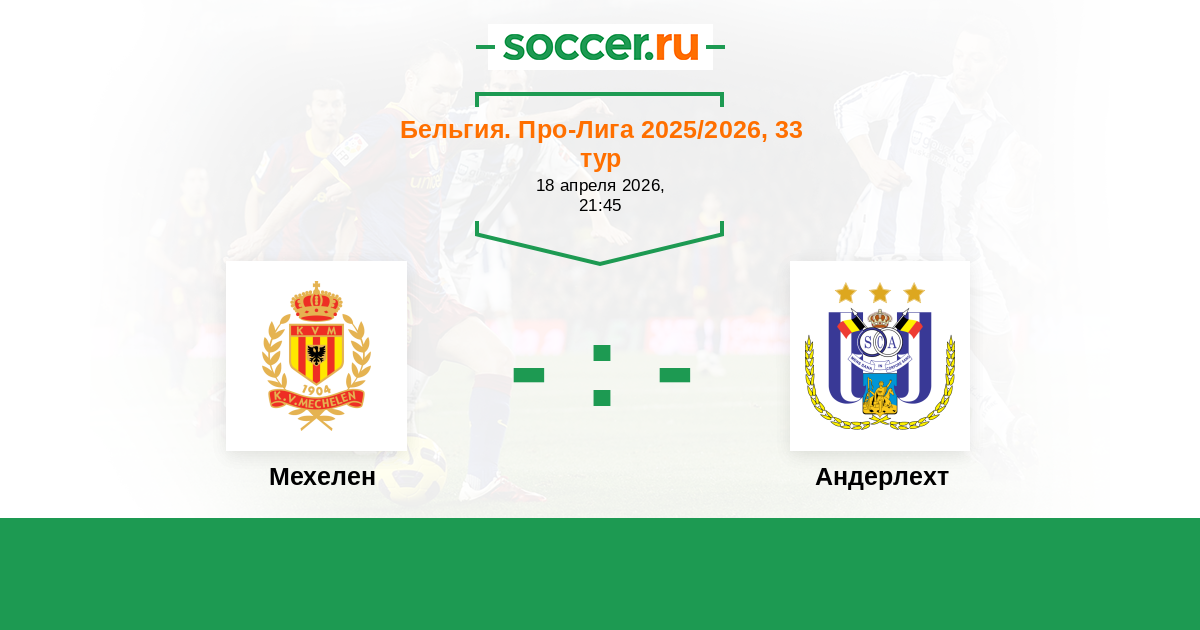 Бельгия. Про-Лига 15.03.2026 Мехелен Логотип футбольный клуб Мехелен 1:0 Логотип футбольный клуб Андерлехт (Брюссель) Андерлехт