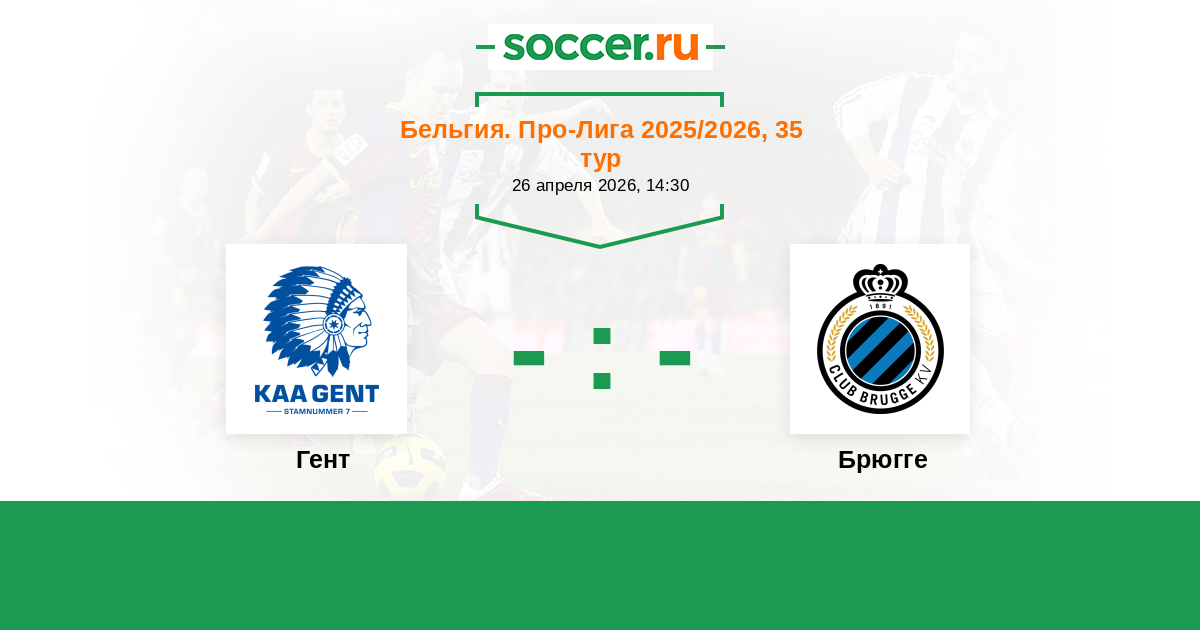 Бельгия. Про-Лига 20.04.2025 Гент Логотип футбольный клуб Гент 0:5 Логотип футбольный клуб Брюгге Брюгге