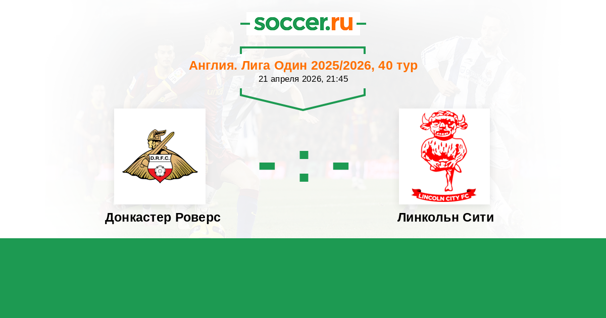 Англия. Первая Футбольная Лига 15.11.2025 Линкольн Сити Логотип футбольный клуб Линкольн Сити 2:1 Логотип футбольный клуб Донкастер Роверс Донкастер Роверс