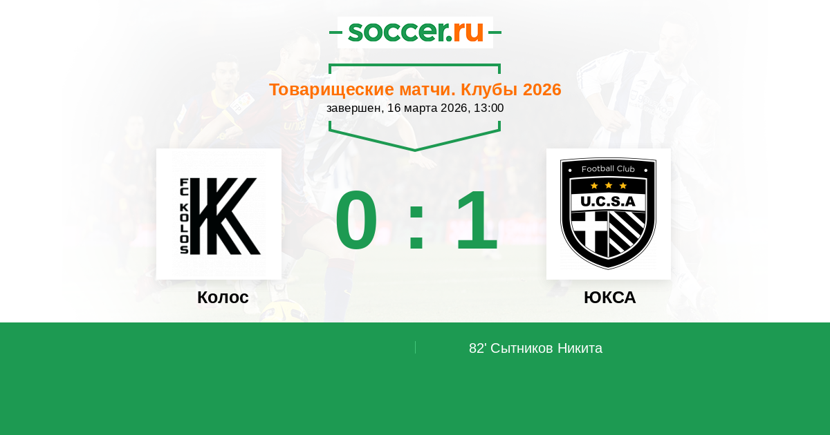 Протокол матча Колос против ЮКСА