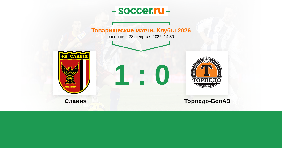 Товарищеские матчи. Клубы 20.01.2024 Торпедо-БелАЗ Логотип футбольный клуб Торпедо-БелАЗ (Жодино) 1:0 Логотип футбольный клуб Славия (Мозырь) Славия