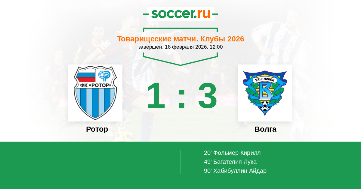 Протокол матча Ротор против Волга