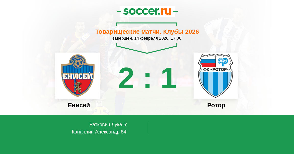 Протокол матча Енисей против Ротор