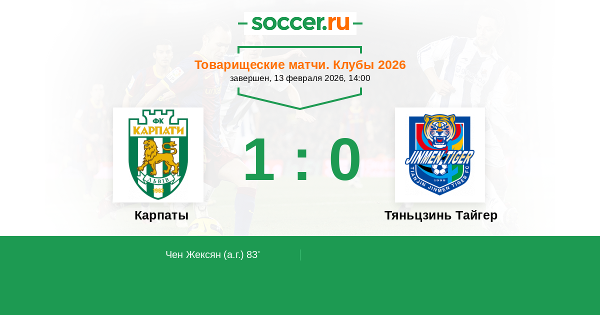 Протокол матча Карпаты против Тяньцзинь Тайгер