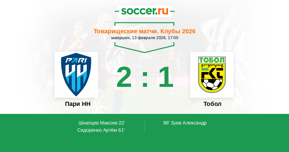 Протокол матча Пари НН против Тобол