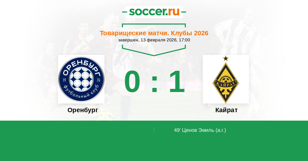 Протокол матча Оренбург против Кайрат