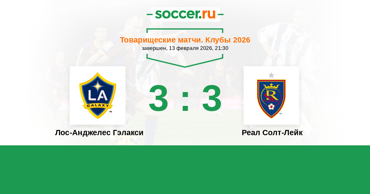 Товарищеские матчи. Клубы 04.02.2018 Реал Солт-Лейк Логотип футбольный клуб Реал Солт-Лейк (Солт-Лейк-Сити) 3:1 Логотип футбольный клуб Лос-Анджелес Гэлакси Лос-Анджелес Гэлакси