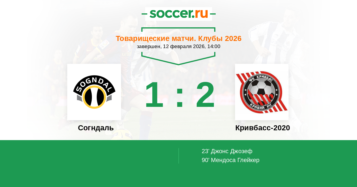 Протокол матча Согндаль против Кривбасс-2020