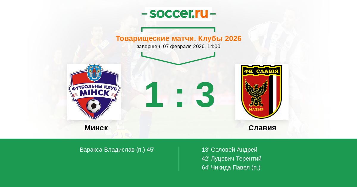 Протокол матча Минск против Славия
