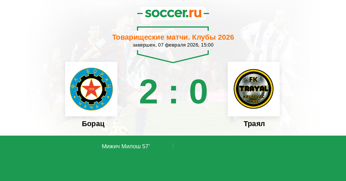 Протокол матча Борац против Траял