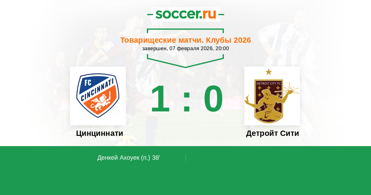 Протокол матча Цинциннати против Детройт Сити
