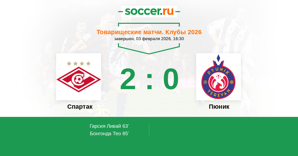 Протокол матча Спартак против Пюник