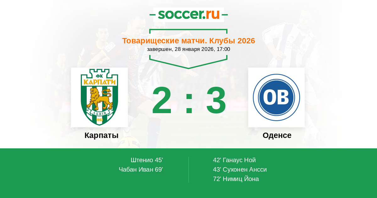 Протокол матча Карпаты против Оденсе