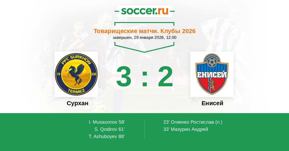Протокол матча Сурхан против Енисей