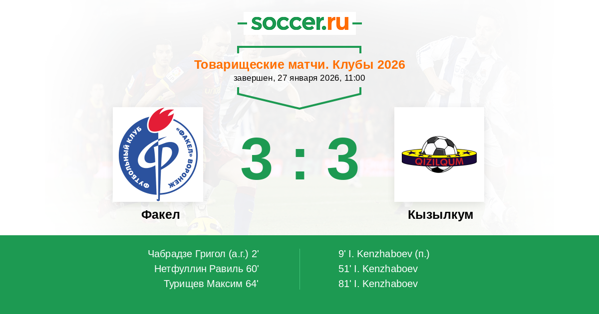 Протокол матча Факел против Кызылкум