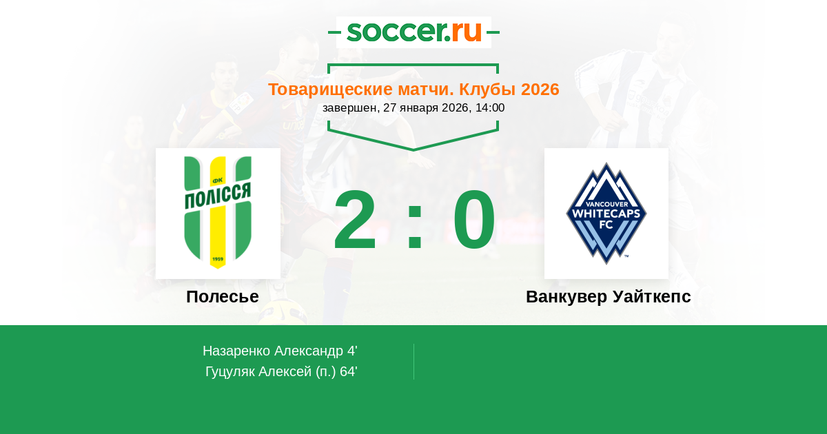 Протокол матча Полесье против Ванкувер Уайткепс