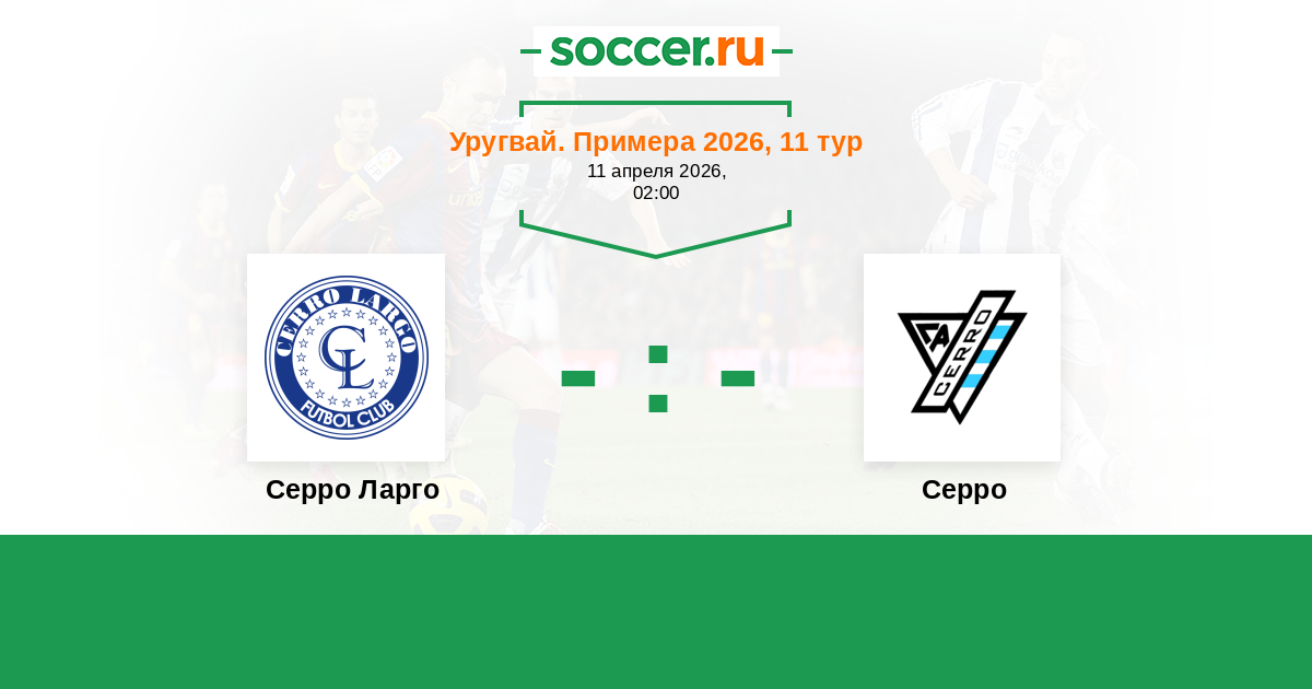 Уругвай. Примера A 29.04.2023 Серро Логотип футбольный клуб Серро (Монтевидео) 0:0 Логотип футбольный клуб Серро Ларго (Мело) Серро Ларго