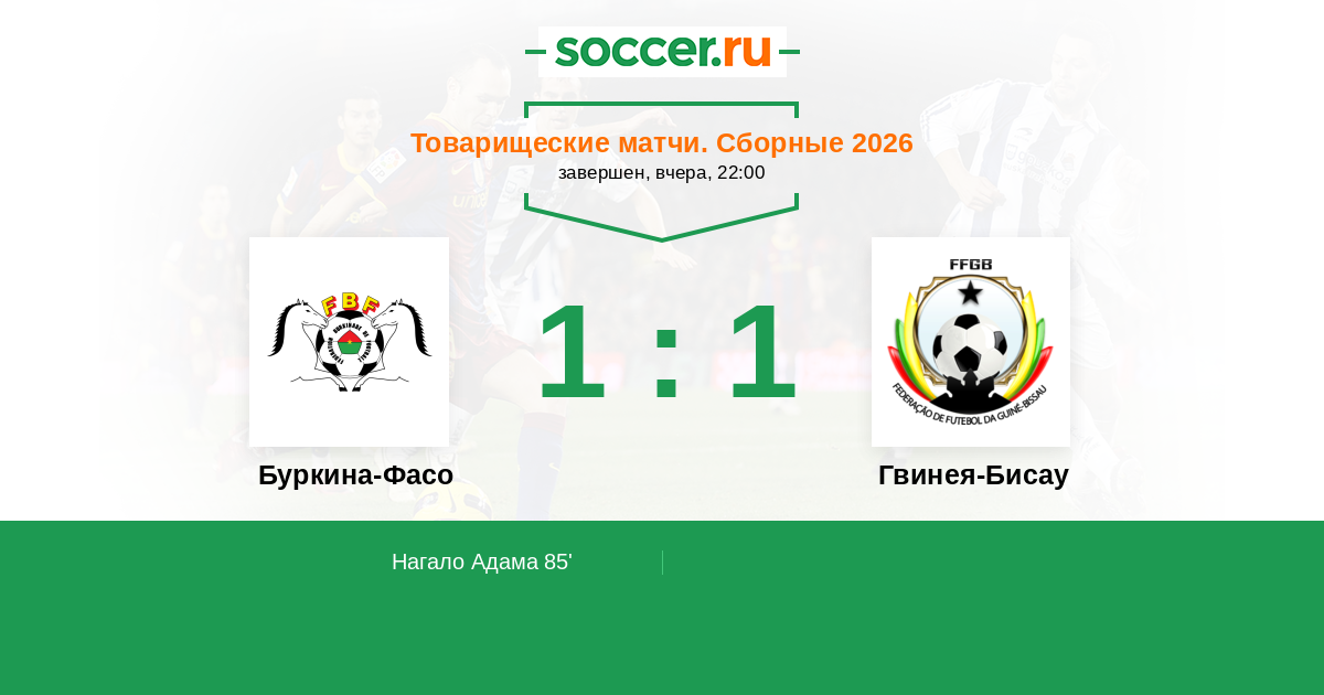 Протокол матча Буркина-Фасо против Гвинея-Бисау