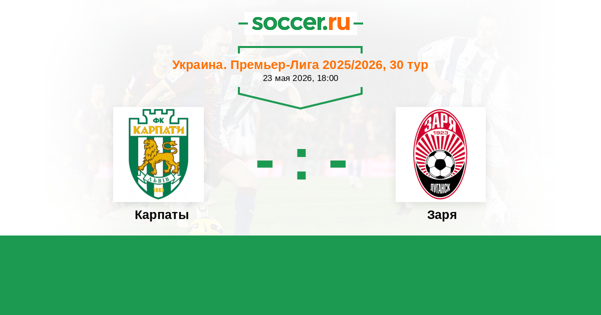Украина. Премьер-Лига 17.09.2017 Заря Логотип футбольный клуб Заря (Луганск) 0:0 Логотип футбольный клуб Карпаты (Львов) Карпаты
