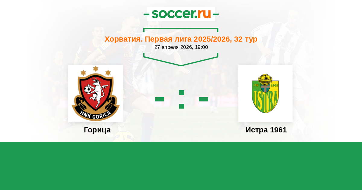 Хорватия. Первая лига 19.09.2020 Горица Логотип футбольный клуб Горица (Велика Горица) 2:2 Логотип футбольный клуб Истра 1961 (Пула) Истра 1961