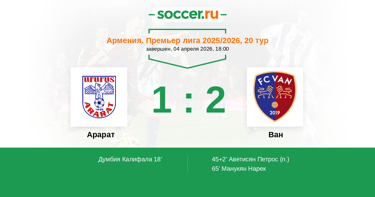Протокол матча Арарат против Ван