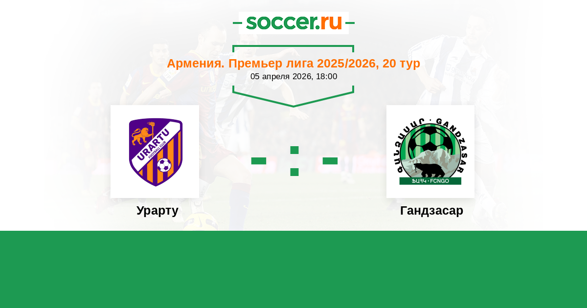 Армения. Премьер-лига 01.06.2020 Урарту Логотип футбольный клуб Урарту (Ереван) 1:0 Логотип футбольный клуб Гандзасар (Капан) Гандзасар