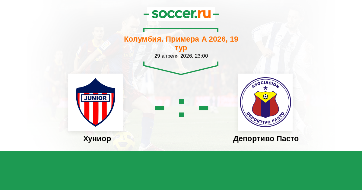 Колумбия. Примера А 29.09.2025 Хуниор Логотип футбольный клуб Хуниор (Барранкилья) 2:0 Логотип футбольный клуб Депортиво Пасто Депортиво Пасто