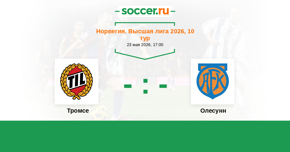 Норвегия. Высшая лига 11.06.2023 Олесунн Логотип футбольный клуб Олесунн 2:3 Логотип футбольный клуб Тромсе Тромсе