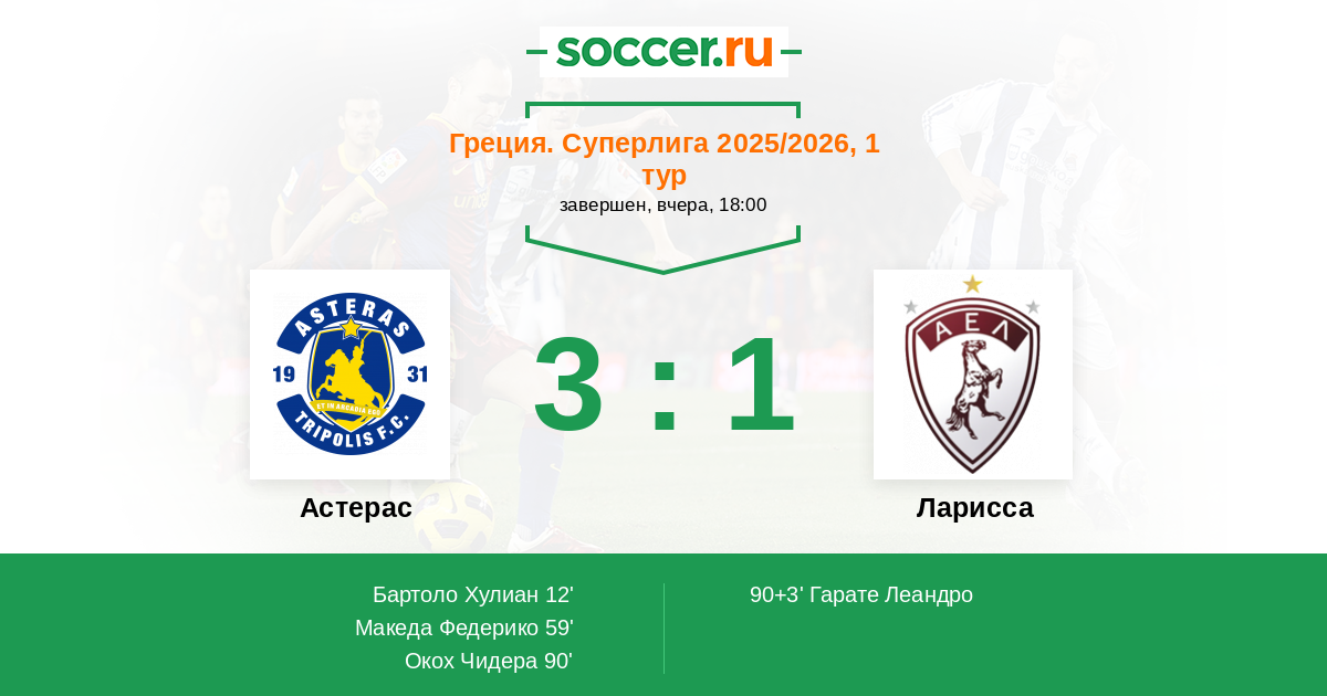 Протокол матча Астерас против Ларисса