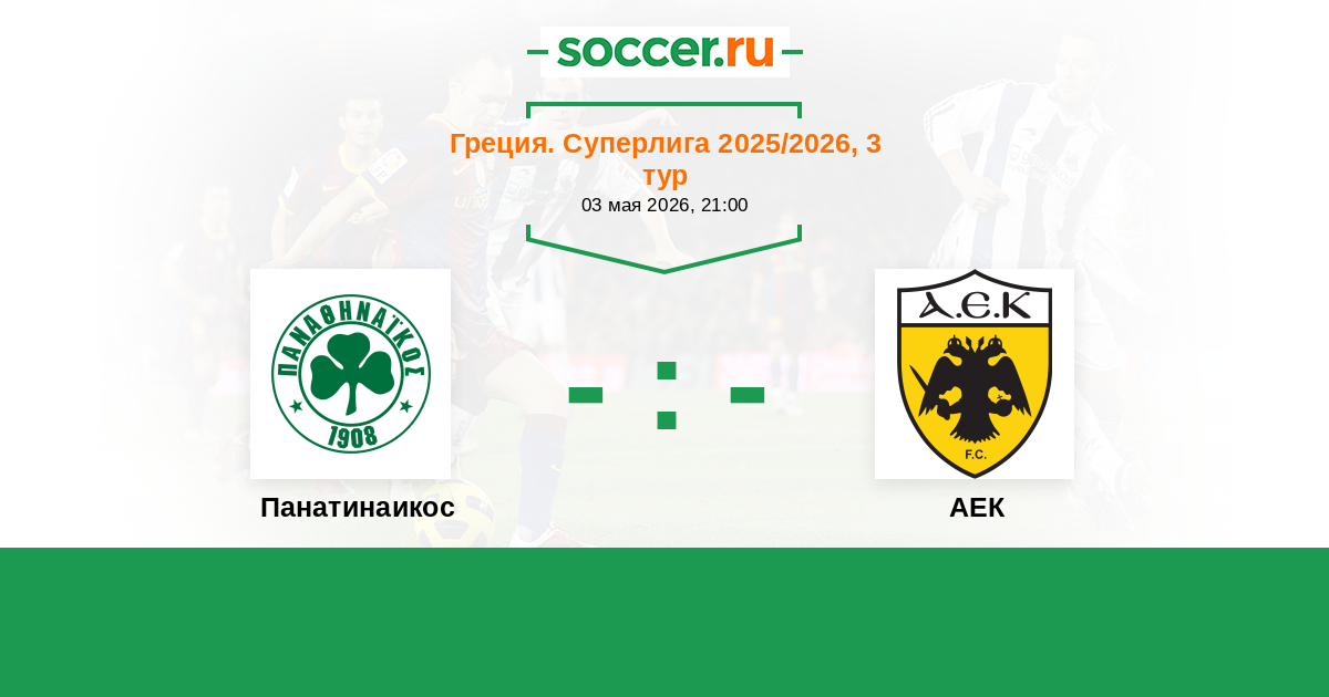 Греция. Суперлига 18.01.2026 АЕК Логотип футбольный клуб АЕК (Афины) 4:0 Логотип футбольный клуб Панатинаикос (Афины) Панатинаикос