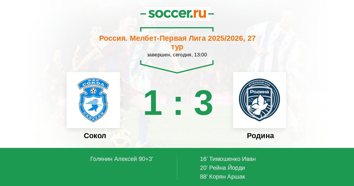 Протокол матча Сокол против Родина