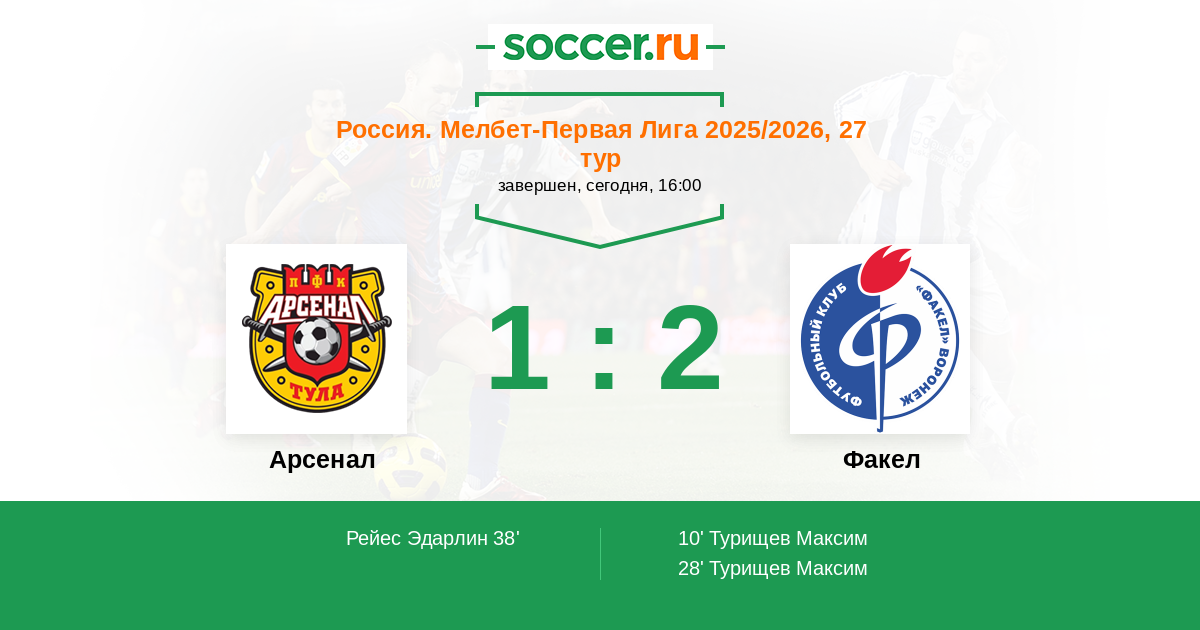 Протокол матча Арсенал против Факел