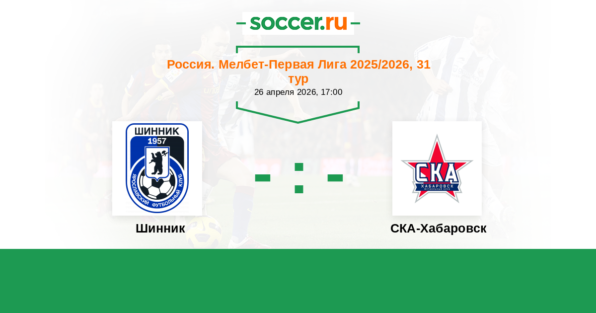 Россия. Первая лига 05.10.2025 СКА-Хабаровск Логотип футбольный клуб СКА-Хабаровск 3:1 Логотип футбольный клуб Шинник (Ярославль) Шинник