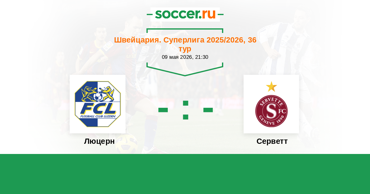 Швейцария. Суперлига 20.02.2022 Серветт Логотип футбольный клуб Серветт (Женева) 1:1 Логотип футбольный клуб Люцерн Люцерн
