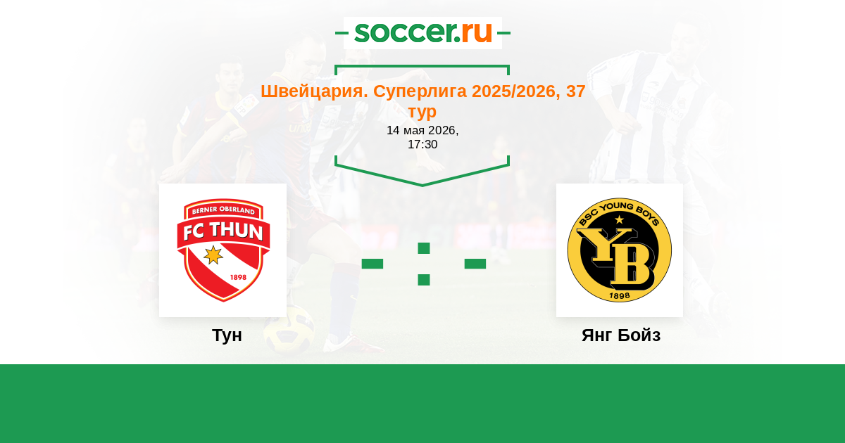 Швейцария. Суперлига 18.04.2018 Тун Логотип футбольный клуб Тун 2:2 Логотип футбольный клуб Янг Бойз (Берн) Янг Бойз
