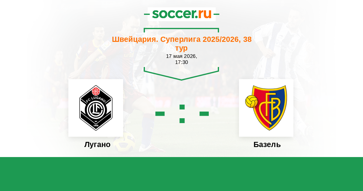 Швейцария. Суперлига 14.10.2017 Лугано Логотип футбольный клуб Лугано 0:4 Логотип футбольный клуб Базель Базель